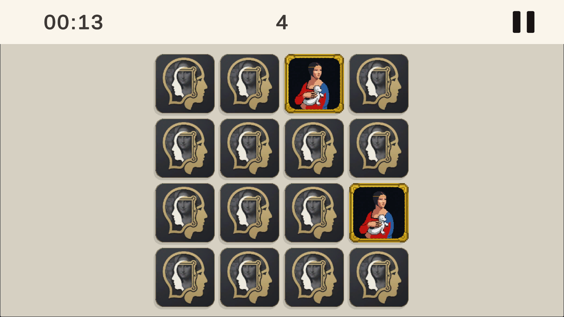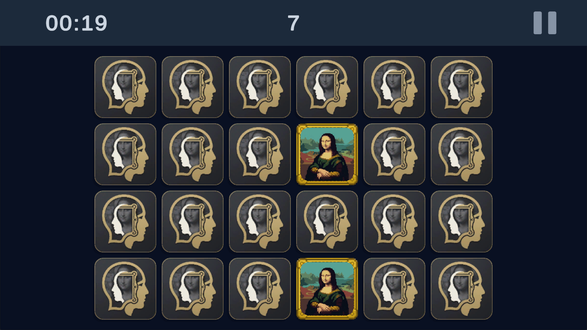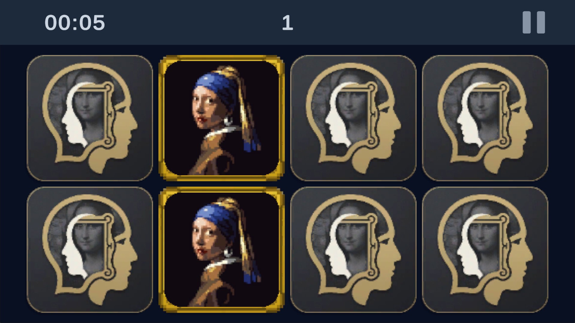 Memo Gallery is a relaxing memory game where you match pairs of cards featuring pixel art inspired by famous paintings.